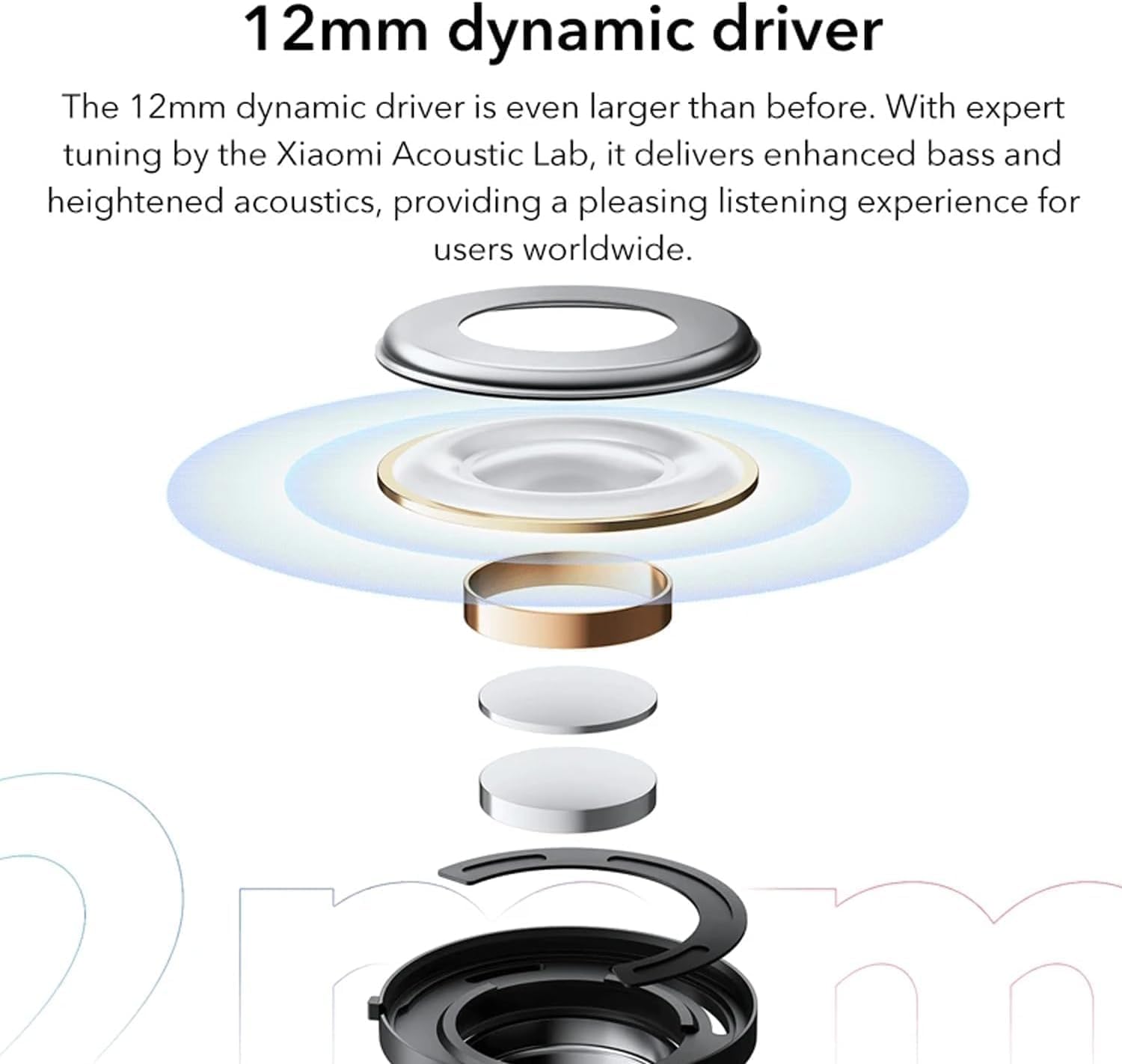 - مشغل ديناميكي 12 ملم – استمتع بصوت جهوري قوي: المحرك الديناميكي 12 ملم أكبر من ذي قبل. مع ضبط الخبراء من قبل مختبر شاومي اكوستيك لاب، فإنه يوفر جهير محسّن وصوتيات مرتفعة، مما يوفر تجربة استماع ممتعة للمستخدمين في جميع أنحاء العالم.