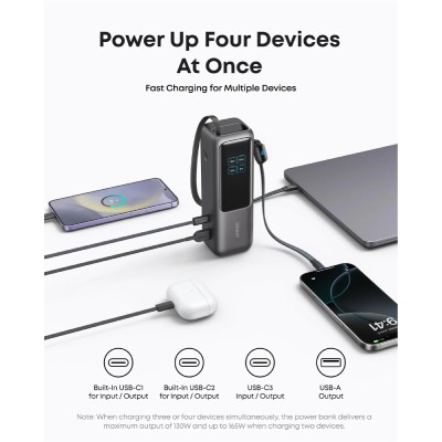 - منافذ USB نوع سي ثلاثية 100 واط للأجهزة المتعددة: مصممة لأصحاب المهام المتعددة التي تتميز بثلاثة منافذ USB نوع سي يوفر كل منها ما يصل إلى 100 واط مما يسمح لك بتشغيل جهاز ماك بوك والأجهزة الأخرى في وقت واحد