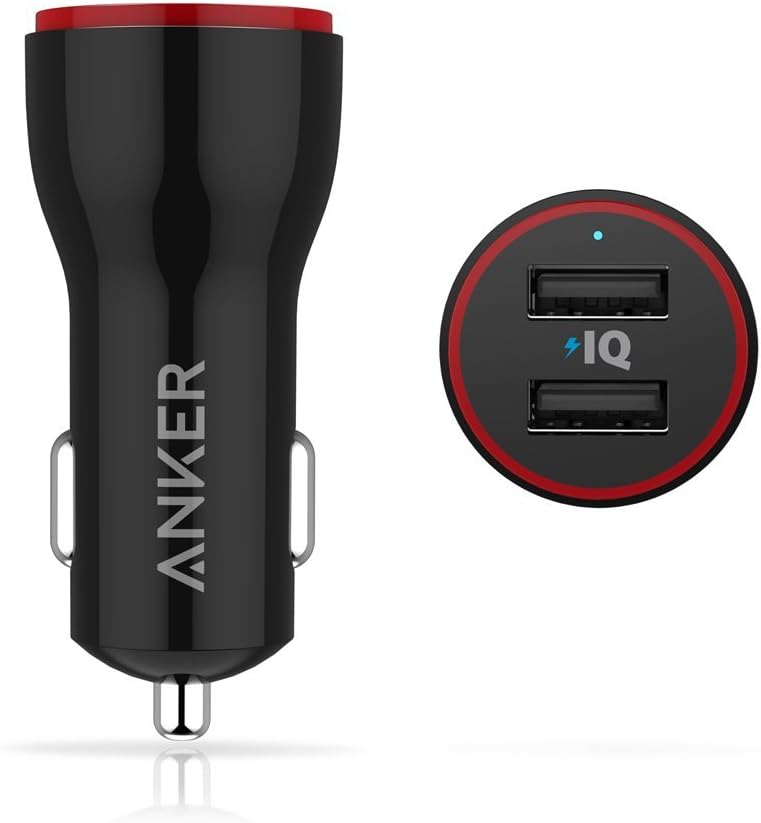 شاحن سيارة صغير معدني 24 وات و4.8 امبير وUSB ثنائي باور درايف 2 من انكر لمحول السيارة مع اضاءة LED زرقاء لموبايل ايفون XR/Xs/ماكس/X/8/7/بلس ايباد برو/اير 2/ميني جالاكسي ال جي اتش تي سي والمزيد أسود