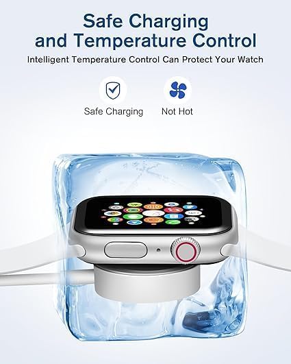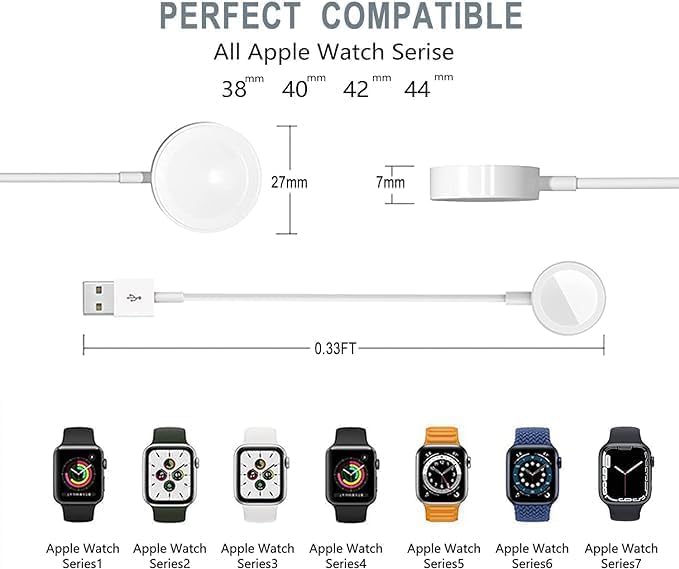 - شاحن لاسلكي لساعة ابل، كابل شحن ساعة مغناطيسي متوافق مع طراز ساعات 9/8/7/الترا/الترا2/SE2/654321/SE1 سلك نوع سي، (أبيض)