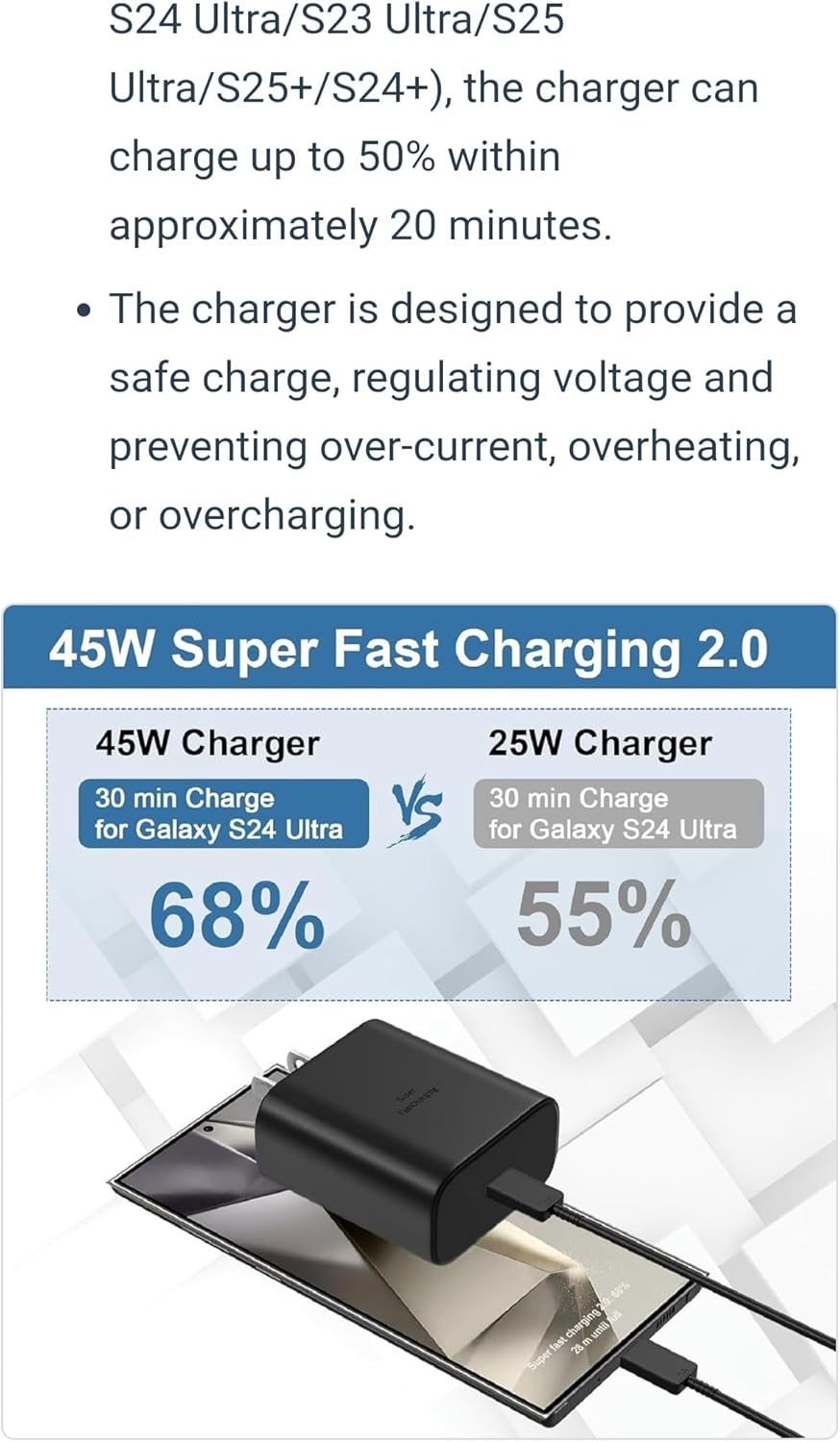 | قدّم المكونات المضمنة | شاحن 2.0 فائق السرعة 45 واط وكابل بيانات USB-C إلى C |