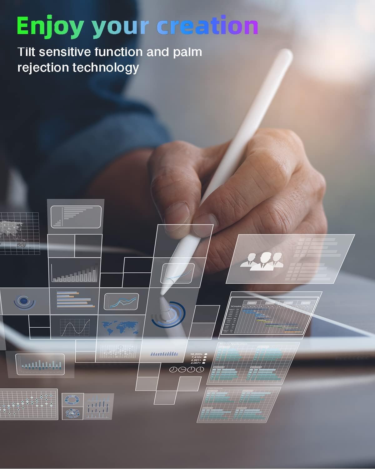 - 【حساسية الميل ودقة البكسل】 يمكن للطرف 1.2 ملم تنفيذ تعليمات أدق، والحساسية أعلى، والإشارة أكثر دقة دون تأخير/نقطة انقطاع. يوفر قلم اي باد وظيفة رفض راحة اليد التي تسمح لك بوضع يدك بشكل مريح على الشاشة. لا تتردد في إطلاق العنان لإبداعك على جهاز اي باد.
