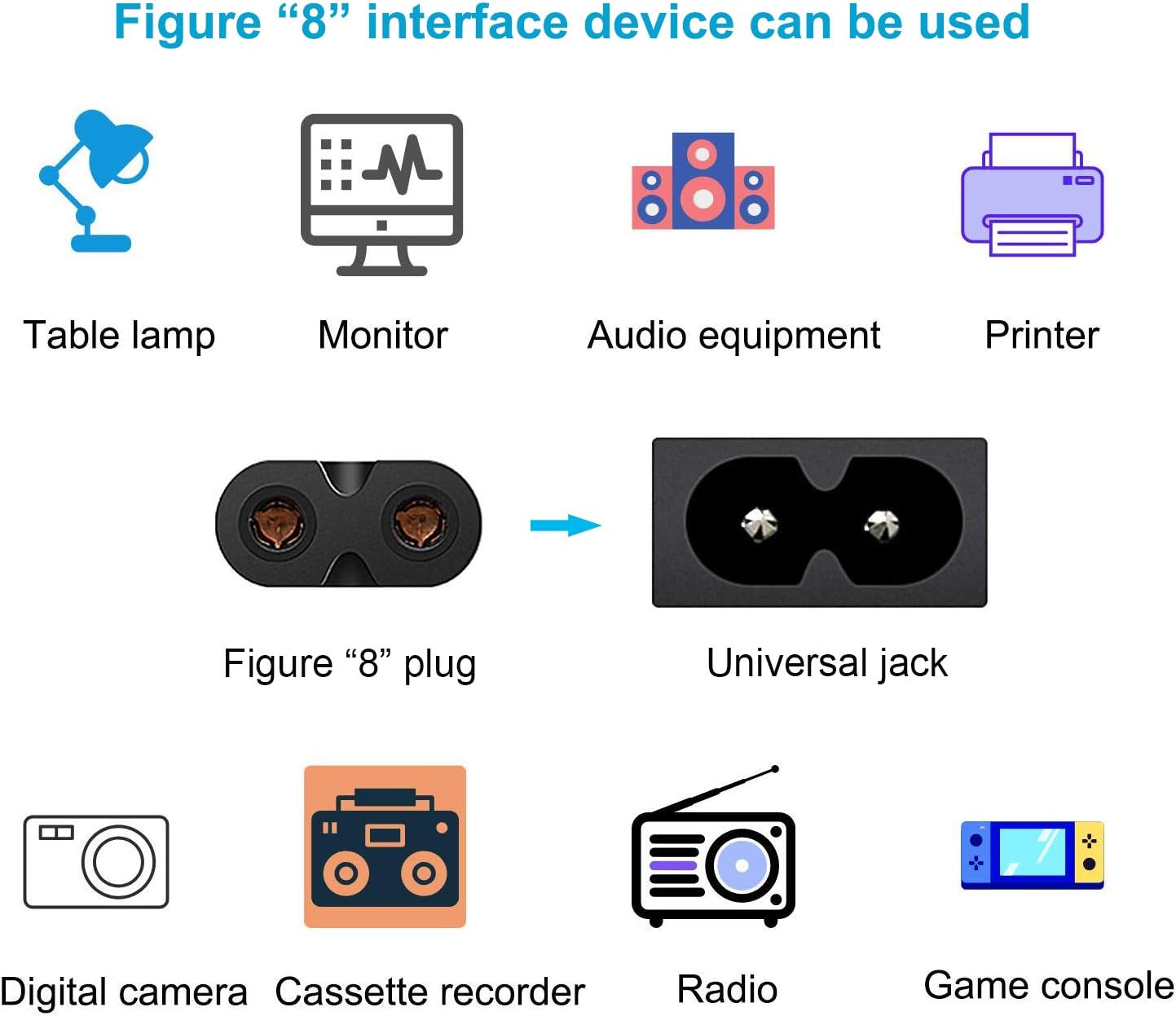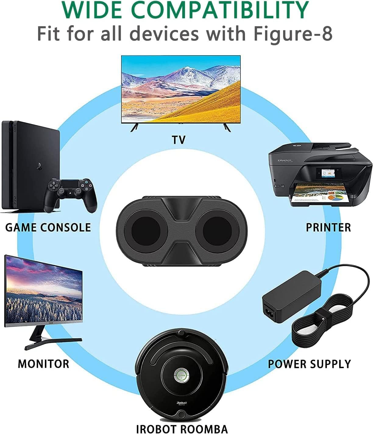 - مناسب لـ: لابتوب ديل سوني اسوس جيت واي توشيبا، طابعة، ماسح ضوئي، وحدة تحكم ألعاب، نظام ترفيهي، مكبر صوت صوتي متعدد الغرف، نظام موسيقى، ساوند بار، ريترو بوم بوكس، كيبورد أكشن، بيانو رقمي، قاعدة شحن، نسخة احتياطية لاسلكية، محطة قاعدة واي فاي، شاحن لاب توب نوت بوك