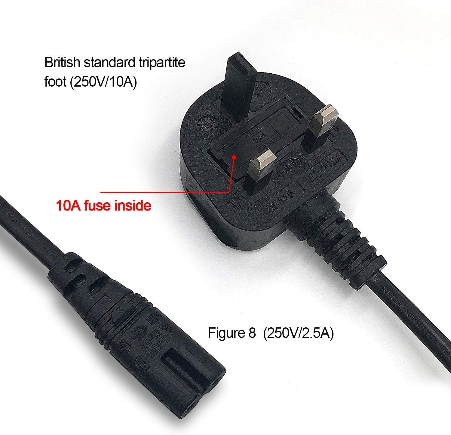 - قابس بريطاني مصبوب قياسي 8 نوع سلك طاقة BS1363/A معتمد ومعتمد! مع صمام مدمج 10 امبير يوفر الحماية ضد ماس كهربائى ومقاوم للحرارة والتيار الزائد والجهد الزائد. آمنة وصديقة للبيئة، غير ضارة وذات أداء عالي السلامة.