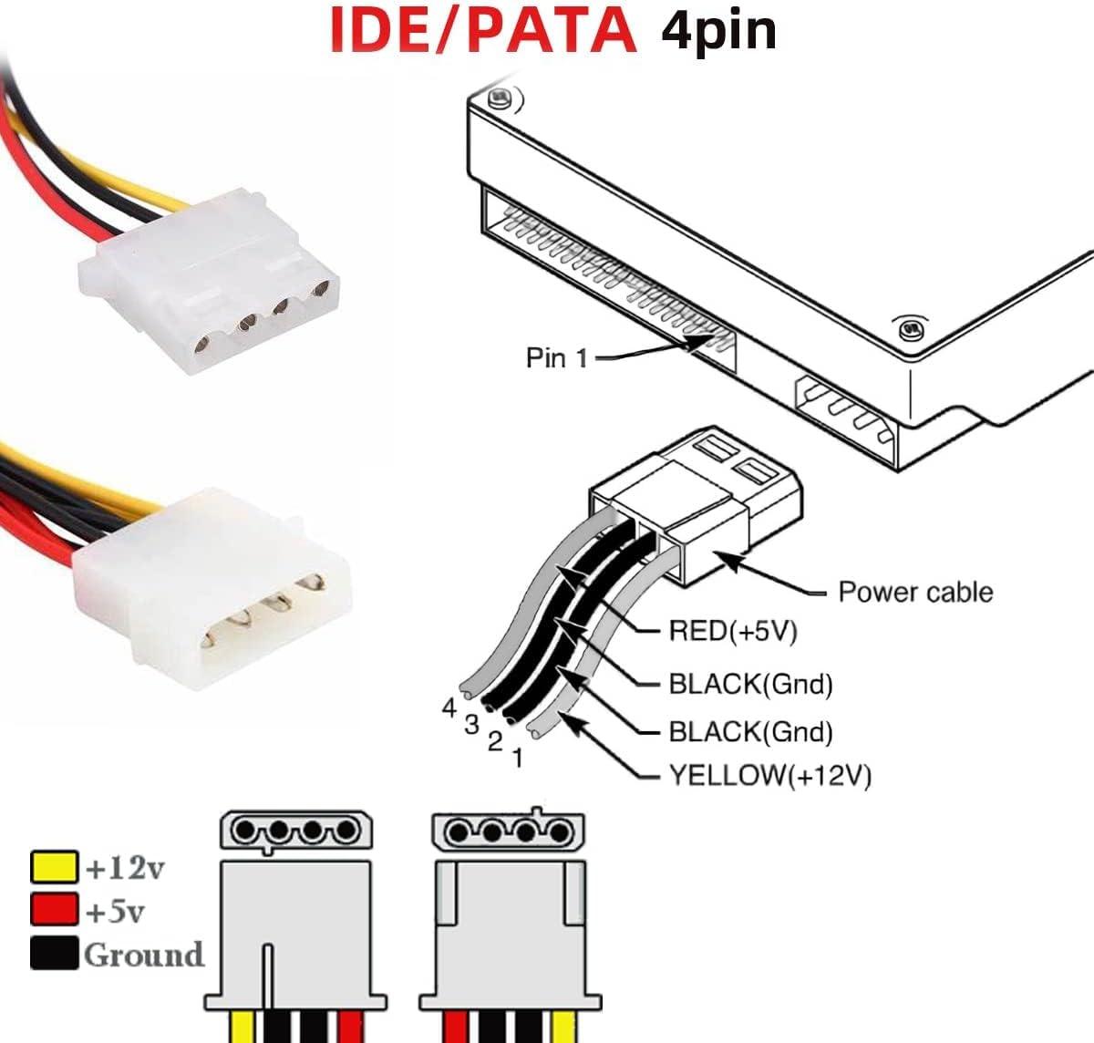 • يتميز كابل مقسم الطاقة ساتا بموصل طاقة اي دي اي 4 دبابيس ذكر يتصل بموصل اي دي اي لمصدر طاقة الكمبيوتر الفردي وينقسم إلى موصلي طاقة أنثى ساتا.