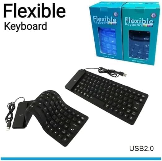 - لوحة مفاتيح مقاومة للماء بمنفذ USB وكابل مرن بـ 85 مفتاح قابلة للطي من جل السيليكون تدعم اللغتين العربية والإنجليزية مع غطاء مفاتيح من المطاط المرن للاب توب والكمبيوتر، لون أسود.