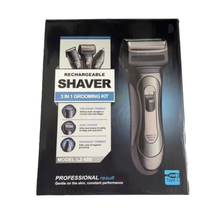 طقم الحلاقة القابل لإعادة الشحن 3 في 1، طراز LZ-688، أداة عناية متعددة الاستخدامات ومريحة، مصممة لتلبية جميع احتياجاتك من الحلاقة والعناية الشخصية. يتضمن هذا الطقم الشامل ثلاثة ملحقات رئيسية: ماكينة حلاقة لحلاقة نظيفة، وأداة تشذيب دقيقة لتشذيب اللحية والشعر، وأداة تشذيب شعر الأنف والأذن. يسمح التصميم القابل لإعادة الشحن بالاستخدام اللاسلكي، مما يوفر مرونة وسهولة في الاستخدام في المنزل أو أثناء التنقل. يتميز الطقم ببطارية قوية توفر أداءً يدوم طويلًا، مما يضمن لك إكمال روتين العناية الشخصية دون انقطاع. يوفر المقبض المريح قبضة مريحة، مما يسهل عليك استخدام الجهاز للحصول على نتائج دقيقة. تصميمه المقاوم للماء يجعله مناسبًا للاستخدام الرطب والجاف، وتنظيفه سهل، حيث يمكن شطف الرأس بسهولة تحت الماء. طقم العناية LZ-688 مثالي للرجال الذين يقدرون الراحة والعملية والمظهر الناعم والمهندم. سواء كنت تحافظ على مظهر الحلاقة النظيفة أو تحافظ على قص شعر وجهك بدقة، فإن هذه المجموعة تحتوي على كل الأساسيات لتلبية احتياجاتك في العناية الشخصية بكفاءة.