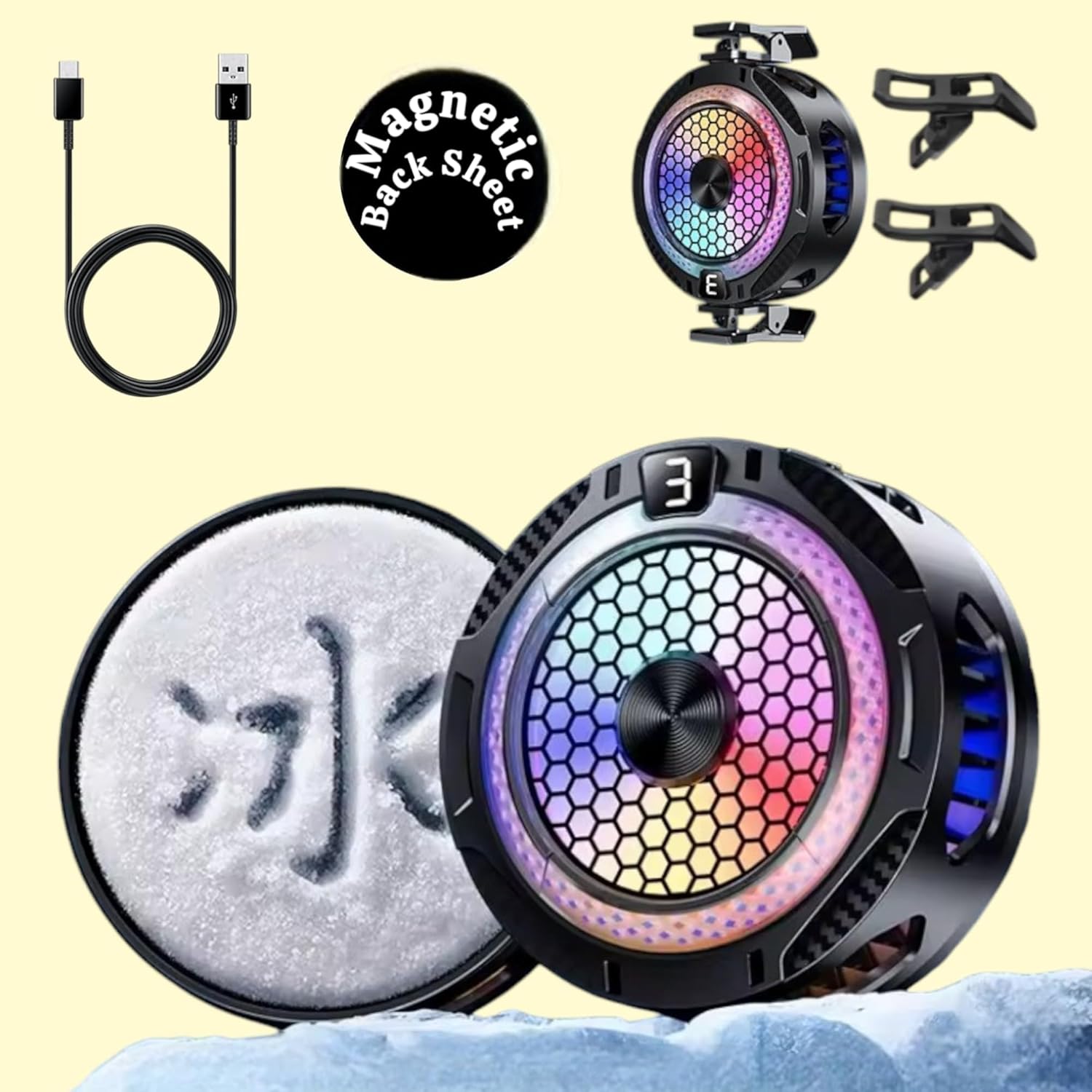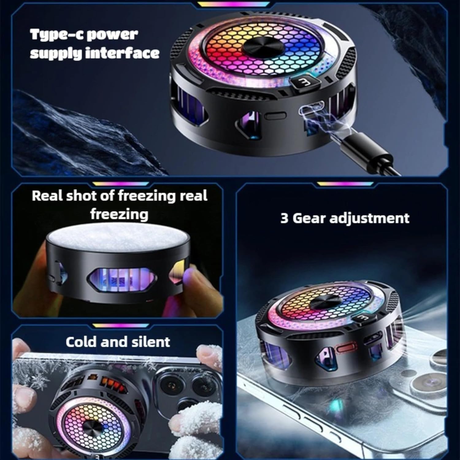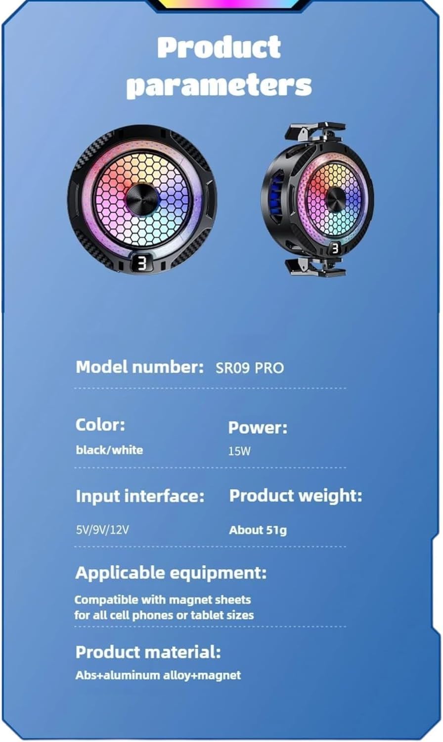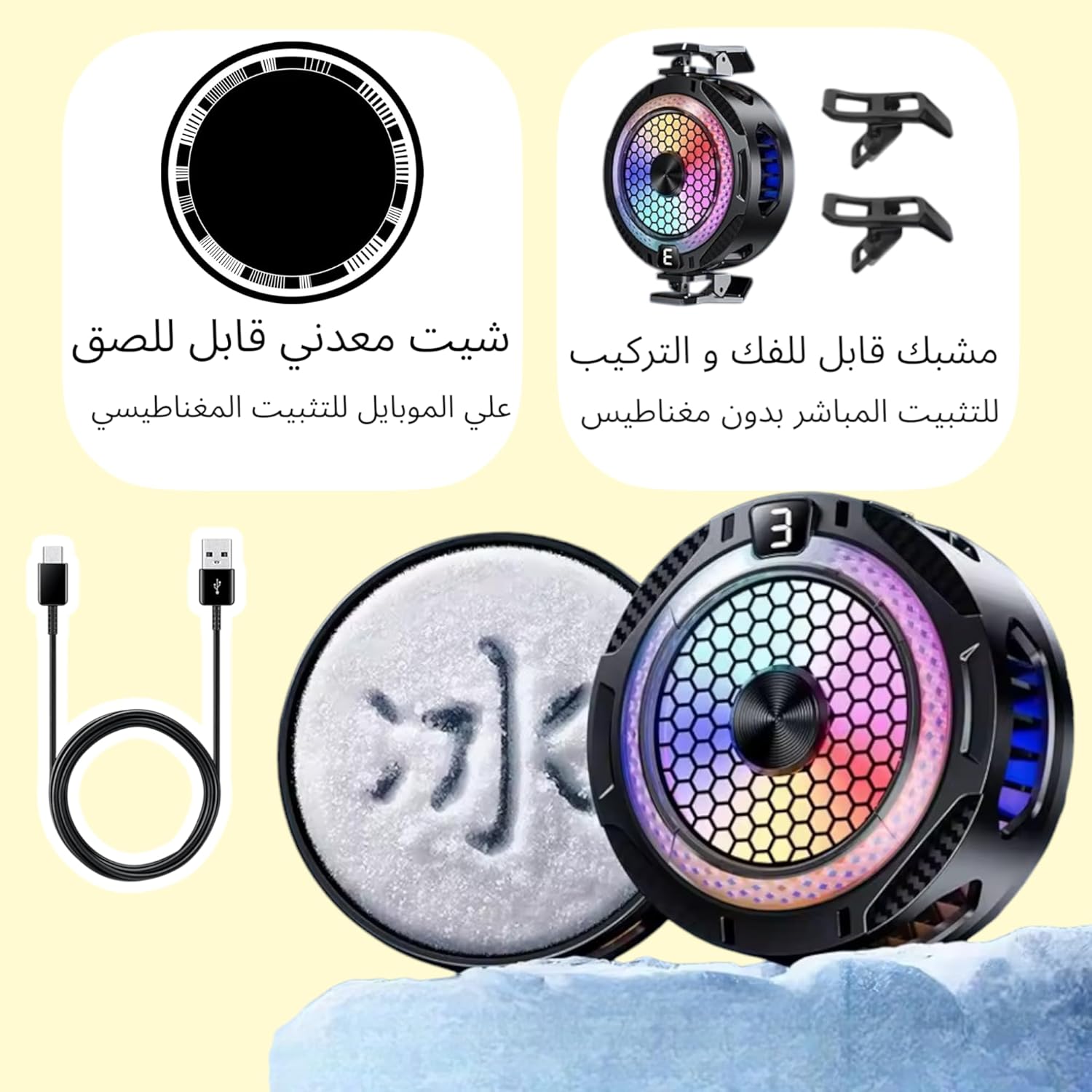 - يعمل بمنفذ USB (USB من النوع C): إعداد التوصيل والتشغيل؛ فقط قم بتثبيته بهاتفك وتوصيله عبر USB للتبريد الفوري