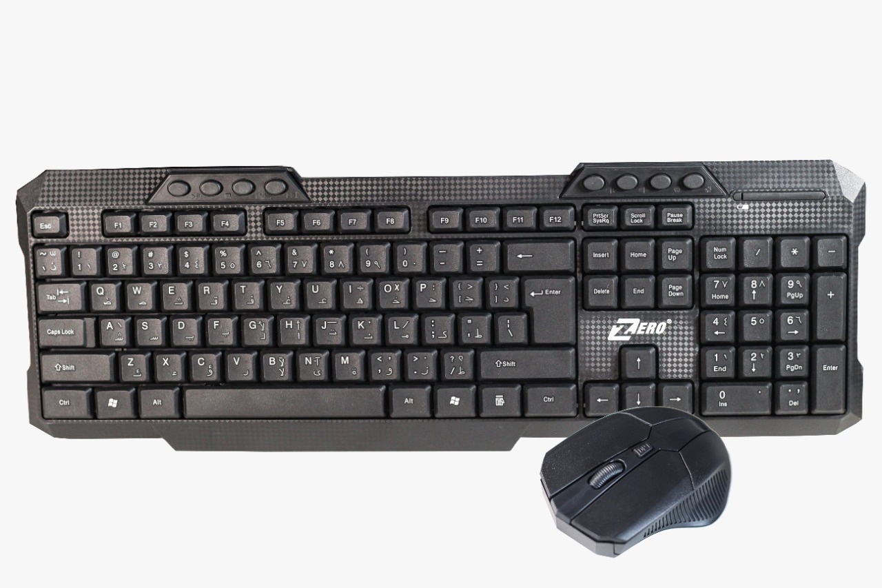 - مجموعة كيبورد وماوس لاسلكي من زيرو، موديل ZR-5608، تصميم مفتاح مرتفع. مفتاح غشاء عالي الجودة. هيكل مقاوم للماء والرش. – ويندوز.