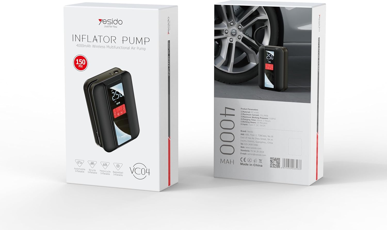 - مضخة نفخ VC04 لاسلكية متعددة الوظائف 4000 مللي امبير في الساعة من يسيدو، 10.34 بار