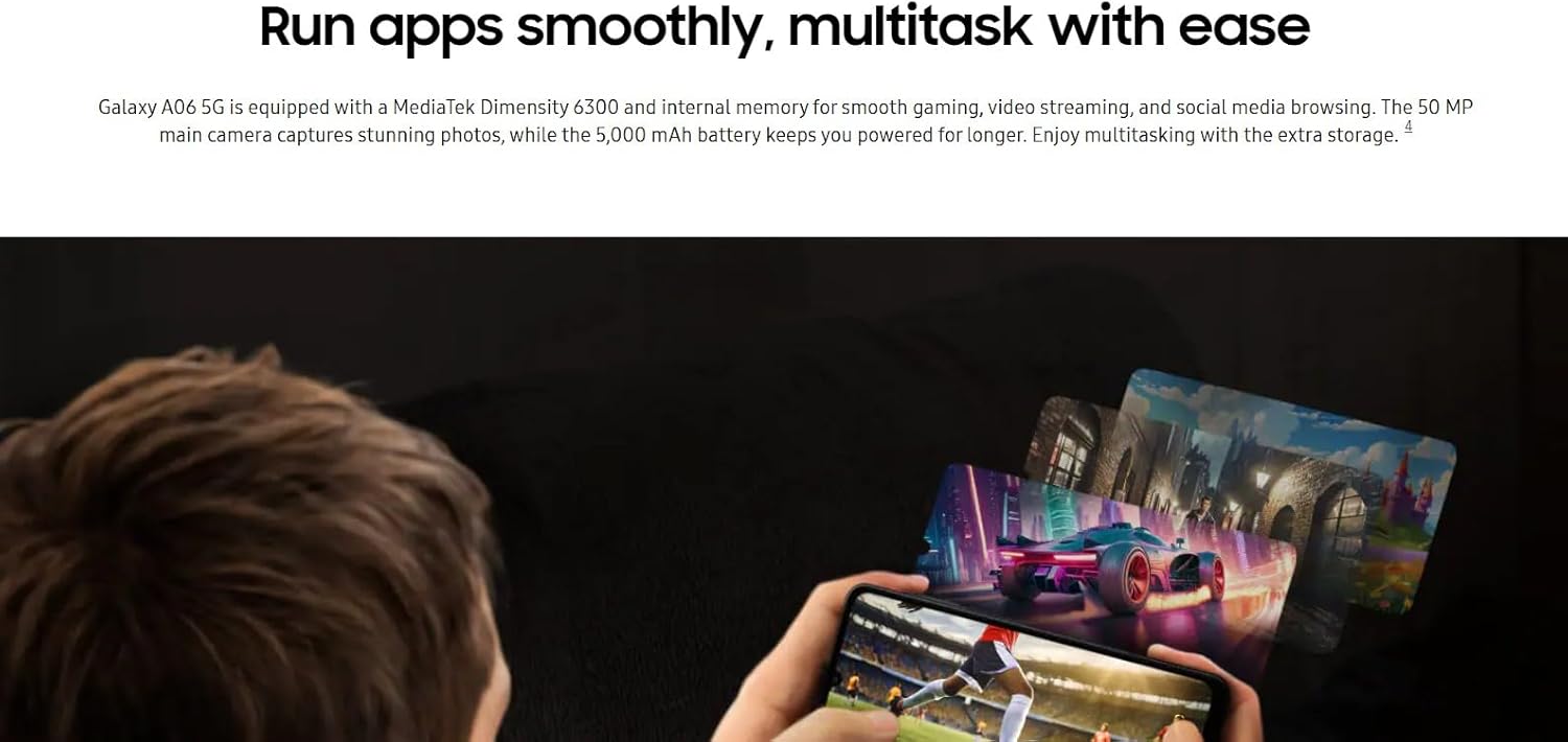 • بطارية تدوم طويلاً 5000 مللي امبير/ ساعة: واصل يومك بقوة مع البطارية الكبيرة ذات السعة العالية والتي تبقيك تستخدم موبايلك طوال اليوم. استمتع بوقت استخدام طويل للتصفح والبث والألعاب وأكثر من ذلك دون الحاجة إلى إعادة الشحن بشكل متكرر. تضمن لك إدارة البطارية الفعالة الاعتماد على جهازك ليدوم طوال يومك المزدحم وما بعده.