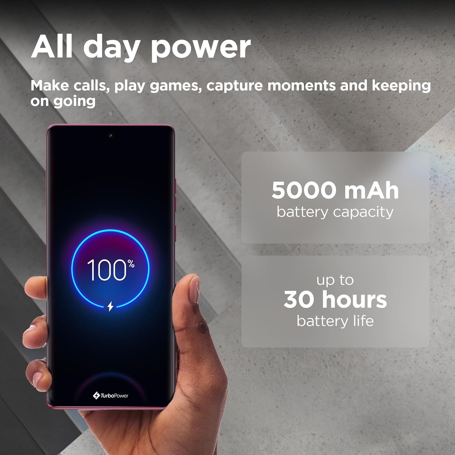 - شحن تربو باور فائق السرعة بقدرة 68 وات. استمتع بطاقة بطارية تدوم طوال اليوم مقابل 15 دقيقة فقط من الشحن. 2