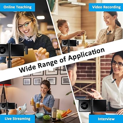 - نظام لاسلكي شامل: الميكروفون الصغير لاسلكي بمشبك للتثبيت في الياقة. يمكنك حمله باليد أو تثبيته على قميصك. يمكنك تغطية 15 م، ويساعدك على التخلص من الأسلاك الفوضوية وتسجيل أو التقاط الفيديو بوضوح على مسافة أبعد سواء في الداخل أم في الخارج.