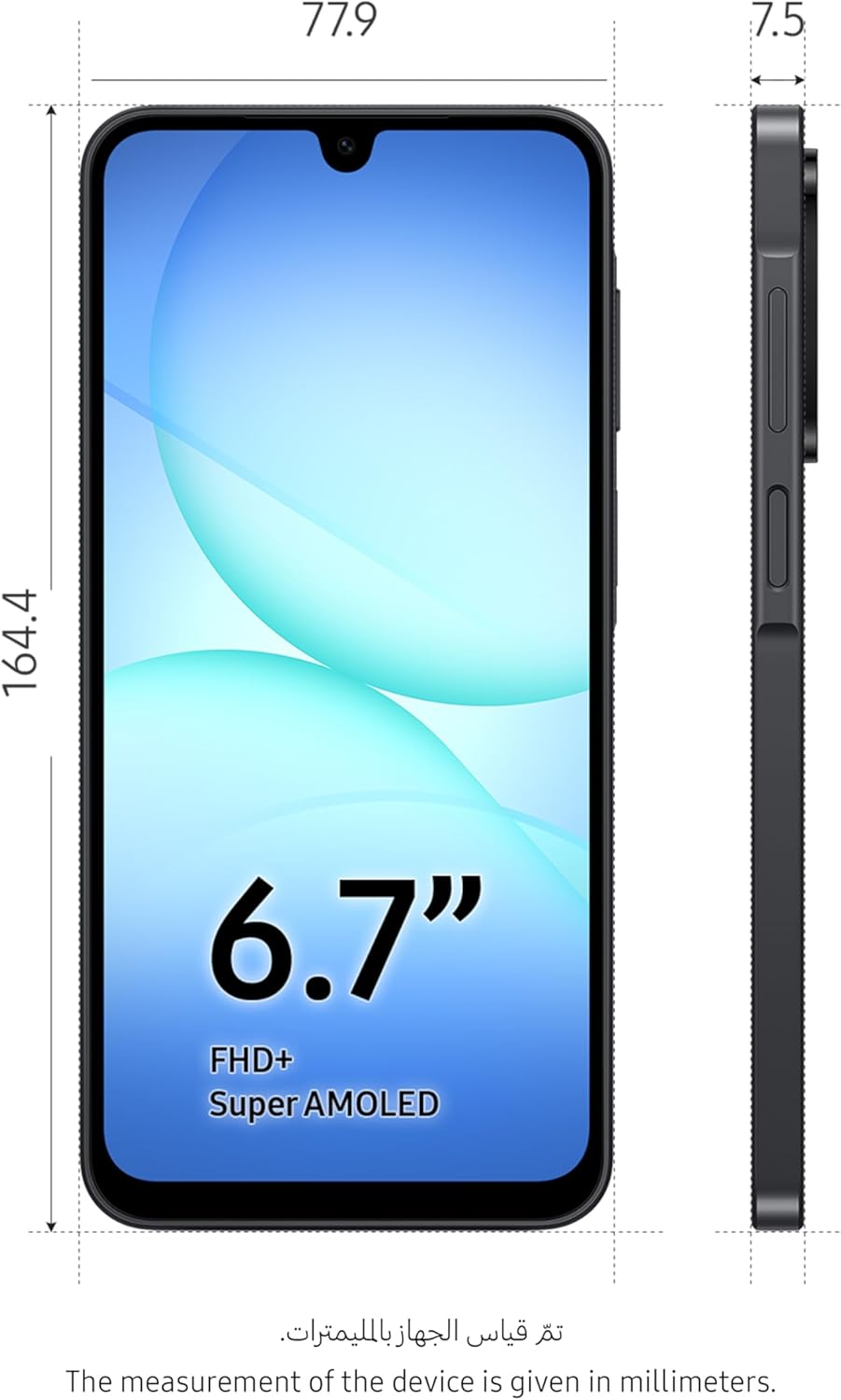 • التصميم: أنيق وعصري. استمتع بتصميم أنيق وأقل حجمًا بفضل الإطار النحيف بسمك 7.5 ملم، ونتوء المفاتيح المُجدَّد “Key Island 2.0″، ومجموعة الكاميرات المتراصّة. متوفر باللون الأسود والرمادي والأزرق.