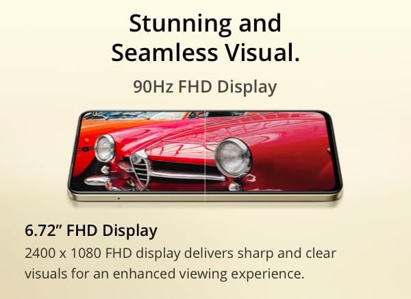 • الشاشة: IPS LCD بحجم 6.67 بوصة بدقة 720 × 1604 بكسل HD+ للجزء الصغير