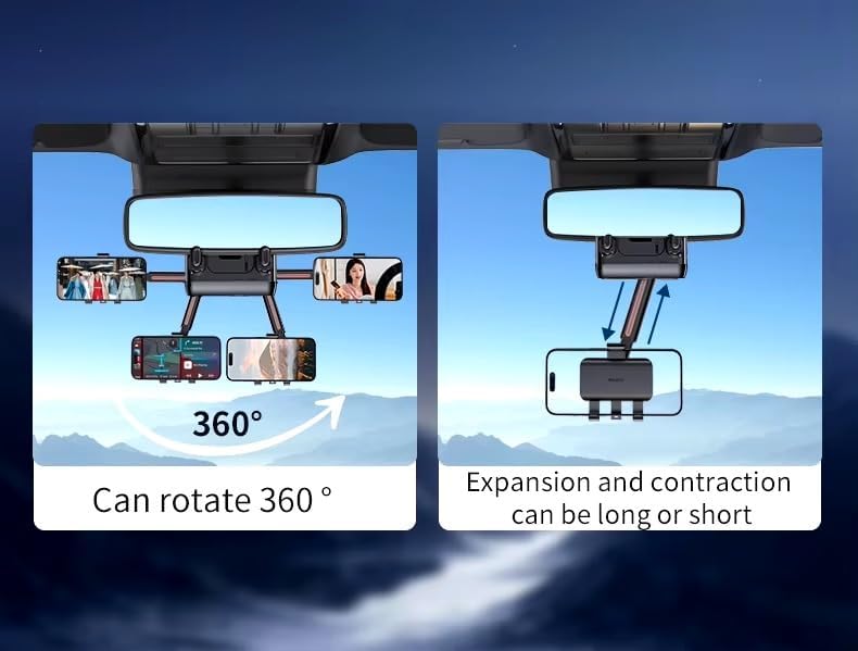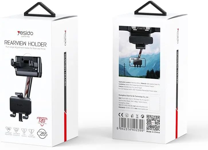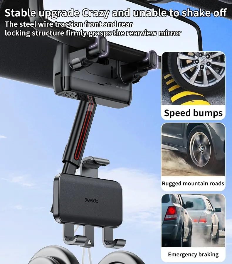 C265 Yesido حامل موبايل قابل للتعديل بزاوية دوران 360 درجة لمرآة الرؤية الخلفية للسيارة.