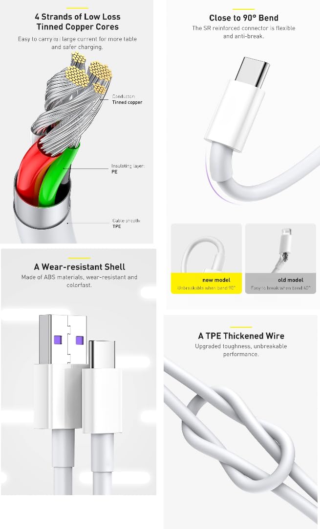 - مقاومة منخفضة للغاية – تصميم كيبل سميك مع مقطع عرضي كبير يضمن أقصى شحن سريع 2.4 امبير مع مقاومة منخفضة.