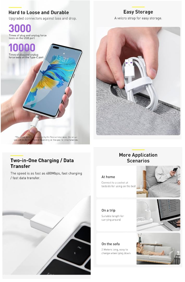 - اختبار جودة صارم – اجتاز اختبارات السلامة الصارمة، مما يضمن الشحن الآمن ونقل البيانات دون خطر ارتفاع درجة الحرارة أو قصر الدائرة.