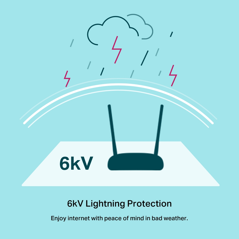 توفر الحماية من الصواعق لجهاز TD-W9960 حماية من الأضرار الكهربائية الناجمة عن العواصف الرعدية، لذلك حتى في الطقس السيئ، يمكنك الاستمتاع بالإنترنت براحة البال.