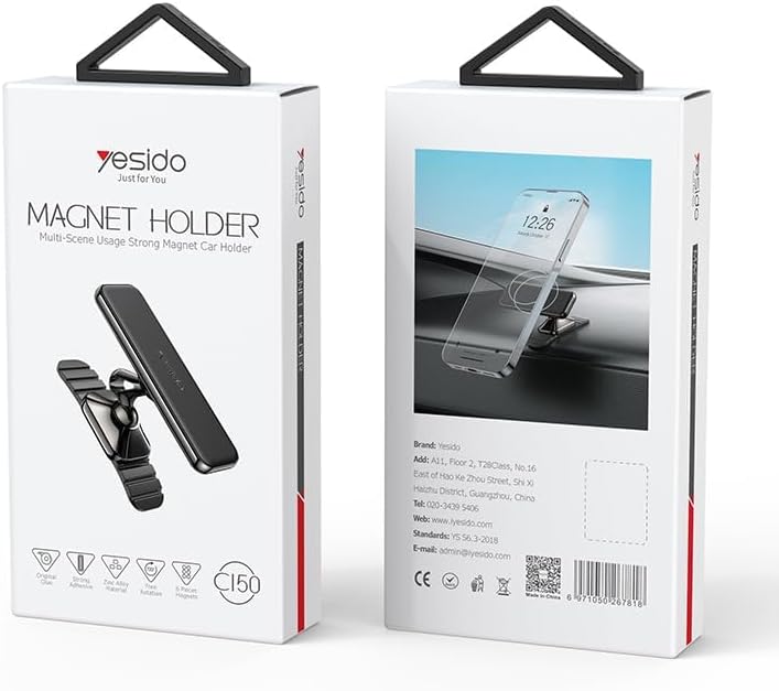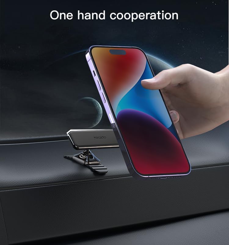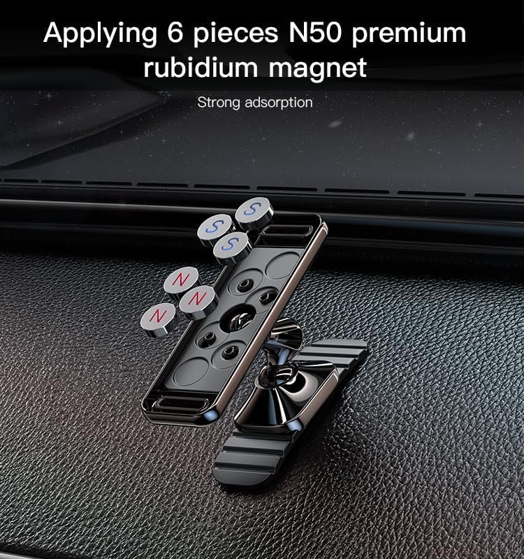 - حامل مغناطيسي: حامل هاتف مغناطيسي قوي للسيارة مصمم للتركيب الآمن على لوحة القيادة والتشغيل السهل بيد واحدة