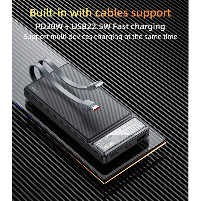 YP55 Yesido 10000mAh PD20W+USB22.5W شحن سريع مؤشر حالة الطاقة الشفاف مع كابل بنك الطاقة.